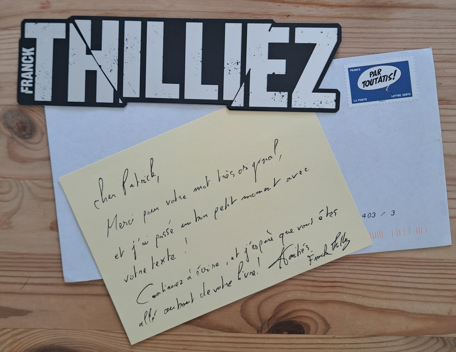Ce courrier de l'auteur à succès Franck Thilliez a fait ma journée ! Quelle surprise !